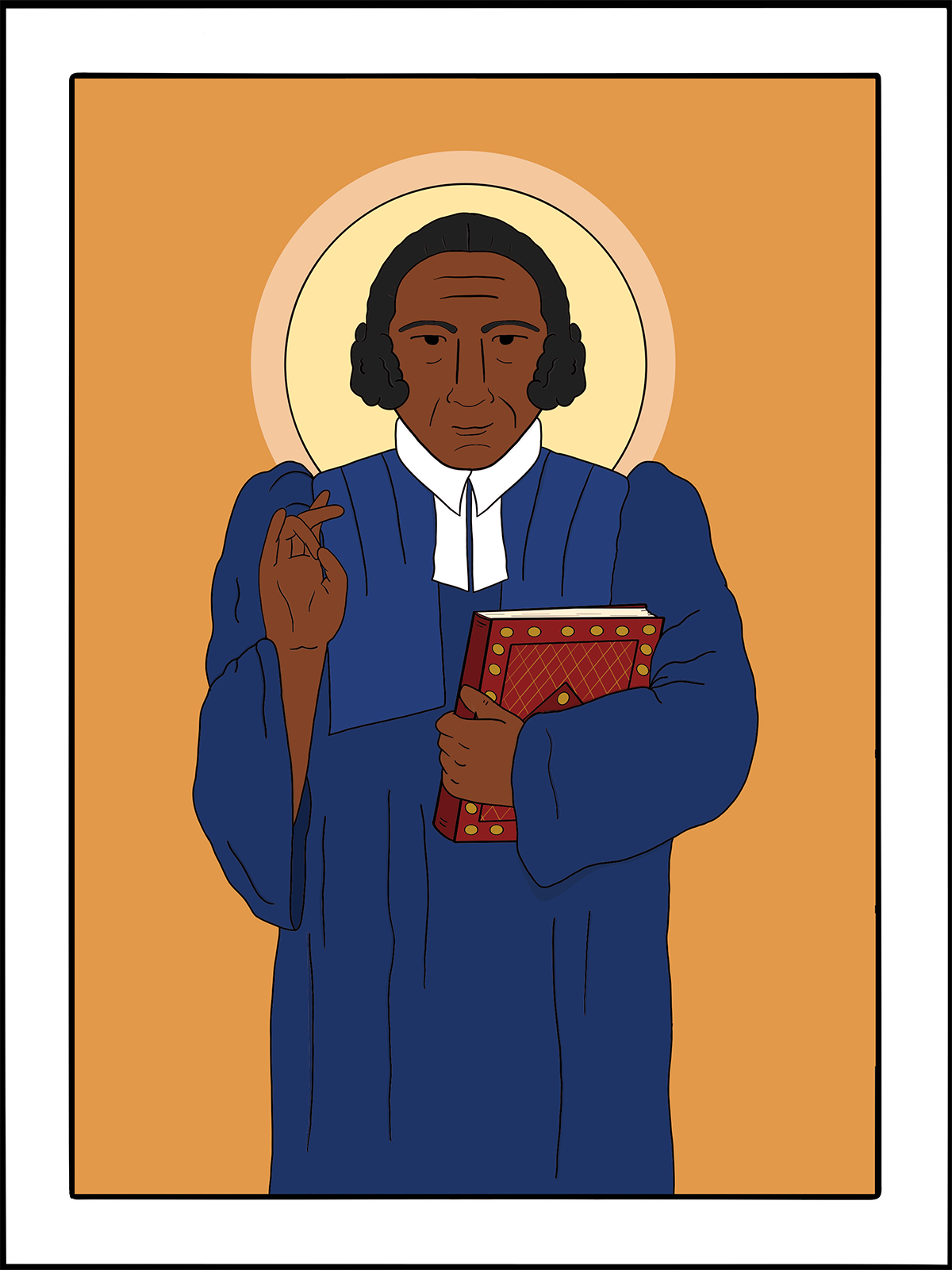 Absalom Jones was born on November 6, 1746, as a house slave in Delaware. He taught himself to read out of the New Testament, among other books. When sixteen, he was sold to a store owner in Philadelphia. There he attended a night school for blacks, operated by Quakers. At twenty, he married another slave and purchased her freedom with his earnings.
